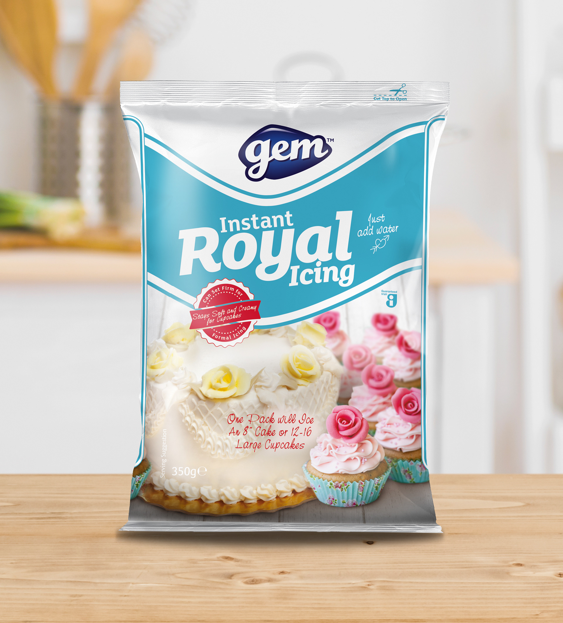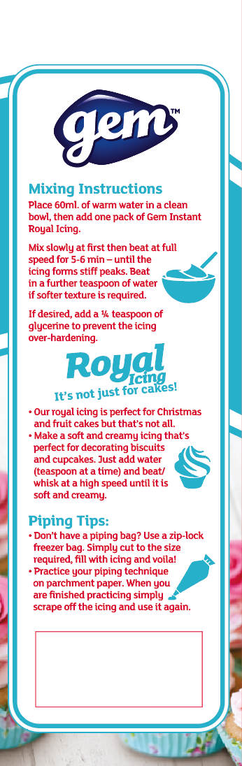 Packaging design for Irish brand Gem's 'Instant Royal Icing Sugar'.